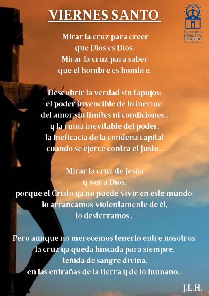VIERNES SANTO Mirar la cruz para creer que Dios es Dios. Mirar la cruz para saber que el hombre es hombre. Descubrir la verdad sin tapujos: el poder invencible de lo inerme, del amor sin límites ni condiciones… y la
