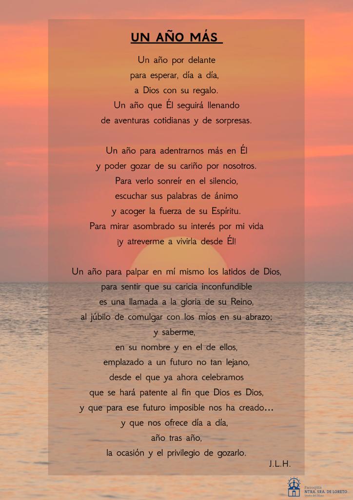UN AÑO MÁS Un año por delante para esperar, día a día, a Dios con su regalo. Un año que Él seguirá llenando de aventuras cotidianas y de sorpresas. Un año para adentrarnos más en Él y poder gozar de