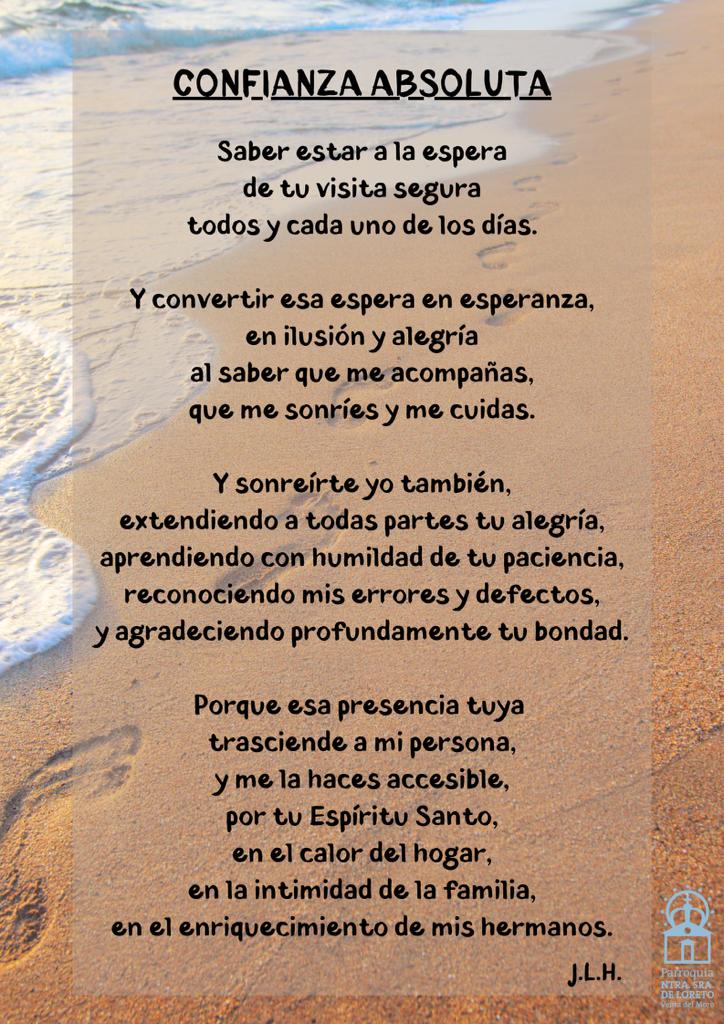 CONFIANZA ABSOLUTA Saber estar a la espera de tu visita segura todos y cada uno de los día del año. Y convertir esa espera en esperanza, en ilusión y alegría al saber que me acompañas, que me sonríes y me